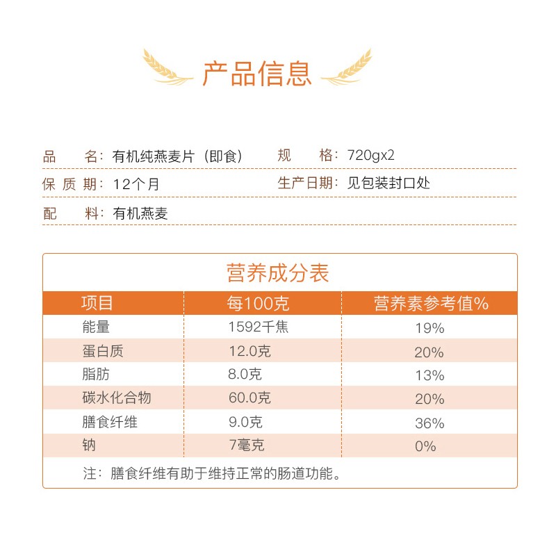 西麥 燕麥片 營養(yǎng)早餐食品 牛奶好搭檔 即食 谷物代餐麥片 谷物代餐有機(jī)麥片720g