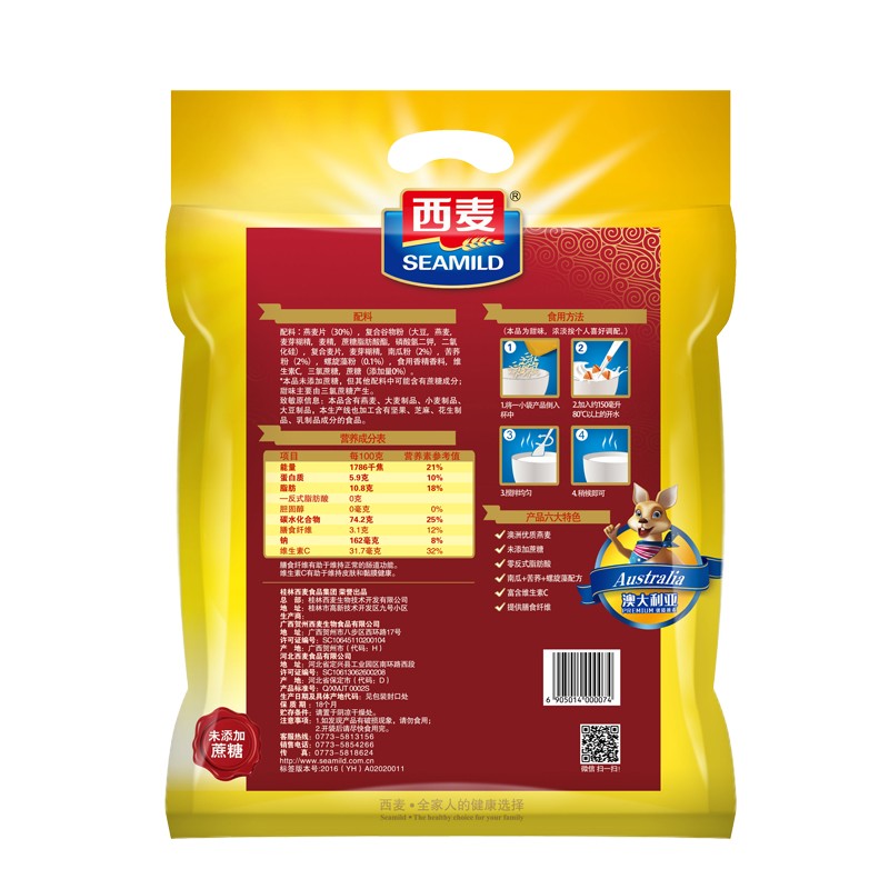 西麥 燕麥片 無添加蔗糖 營養(yǎng)早餐食品 牛奶好搭檔 中老年營養(yǎng) 谷物代餐麥片700g