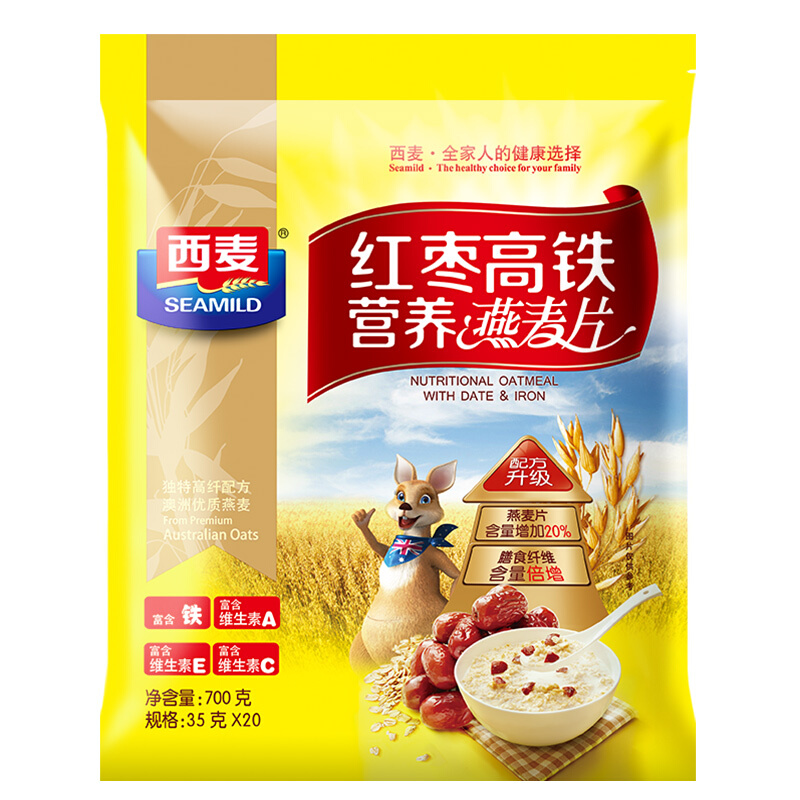 西麥 燕麥片 營養(yǎng)早餐食品 牛奶好搭檔 紅棗高鐵營養(yǎng) 谷物代餐麥片700g(35g-20小袋)獨(dú)立包裝