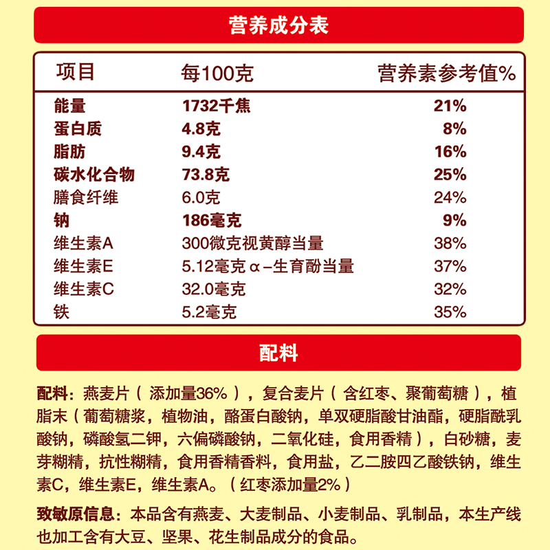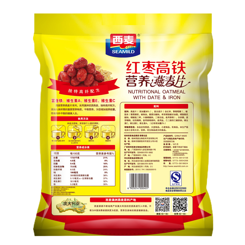西麥 燕麥片 西澳陽光 營養(yǎng)早餐食品 紅棗牛奶營養(yǎng)好搭檔 谷物代餐麥片560g(28g-20小袋)獨(dú)立包裝