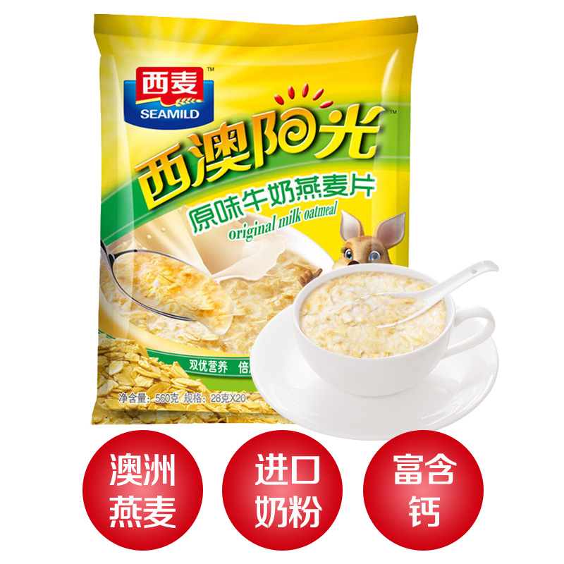 西麥 燕麥片 西澳陽光 營養(yǎng)早餐食品 即食 原味牛奶谷物代餐麥片560g(28g-20小袋)獨(dú)立包裝