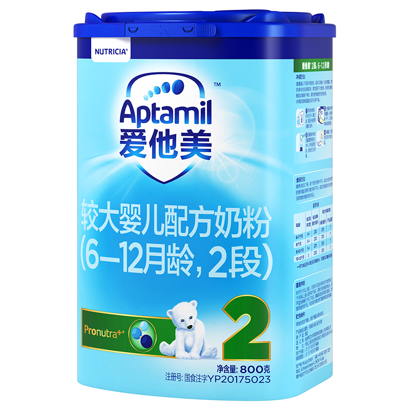 愛(ài)他美(Aptamil) 較大嬰兒配方奶粉(6–12月齡,2段) 800g