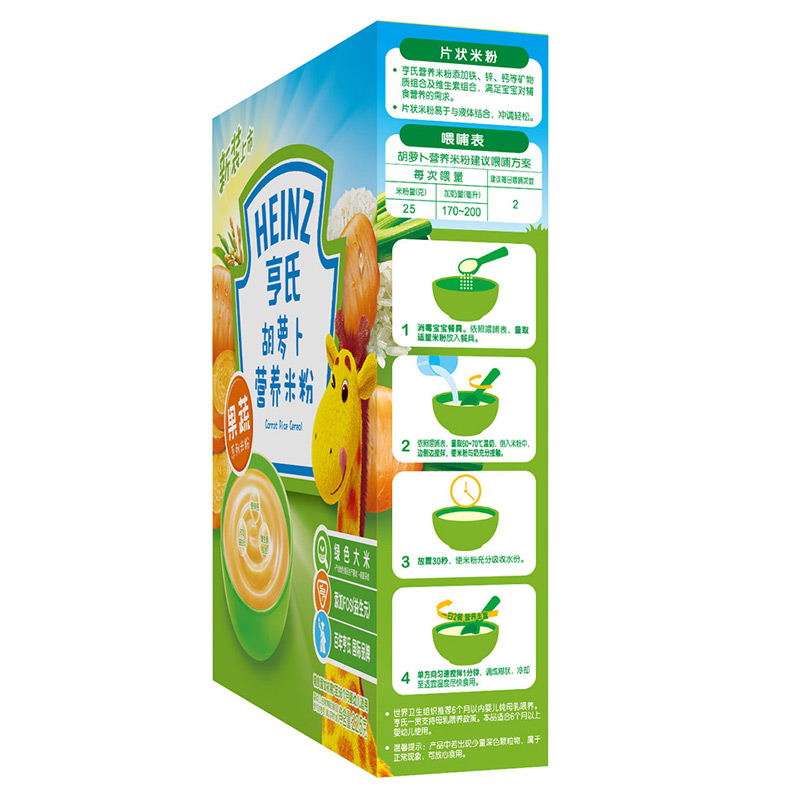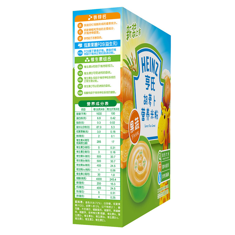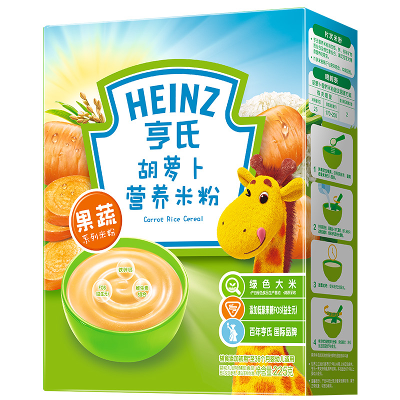 亨氏 (Heinz) 1段 嬰幼兒輔食 胡蘿卜含維生素 寶寶米粉米糊 225g (輔食添加初期-36個(gè)月適用)