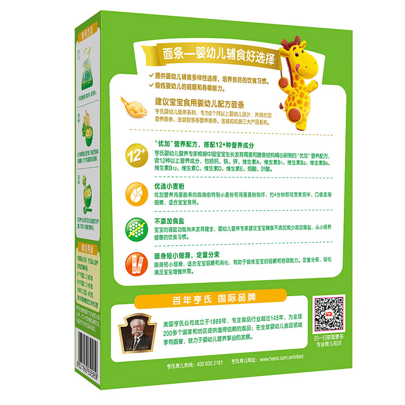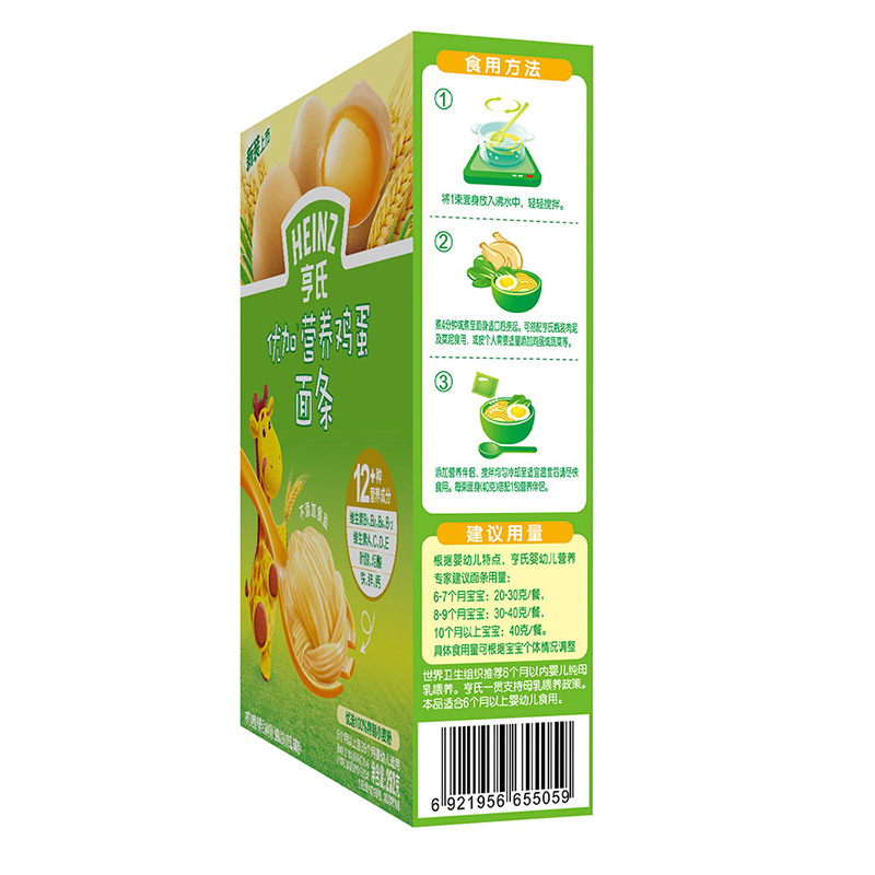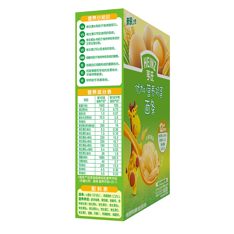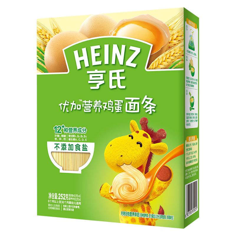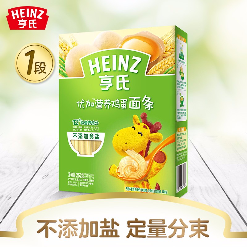 亨氏 (Heinz) 1段嬰幼兒輔食 優(yōu)加寶寶面條 含雞蛋 寶寶營(yíng)養(yǎng)面條252g(無鹽)(輔食添加初期-36個(gè)月適用)