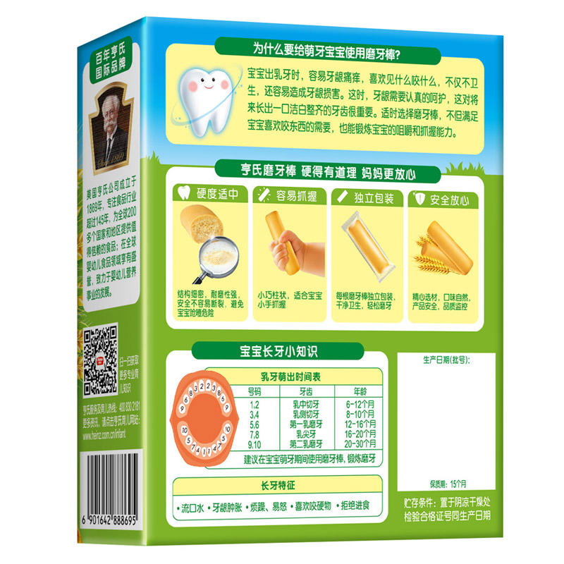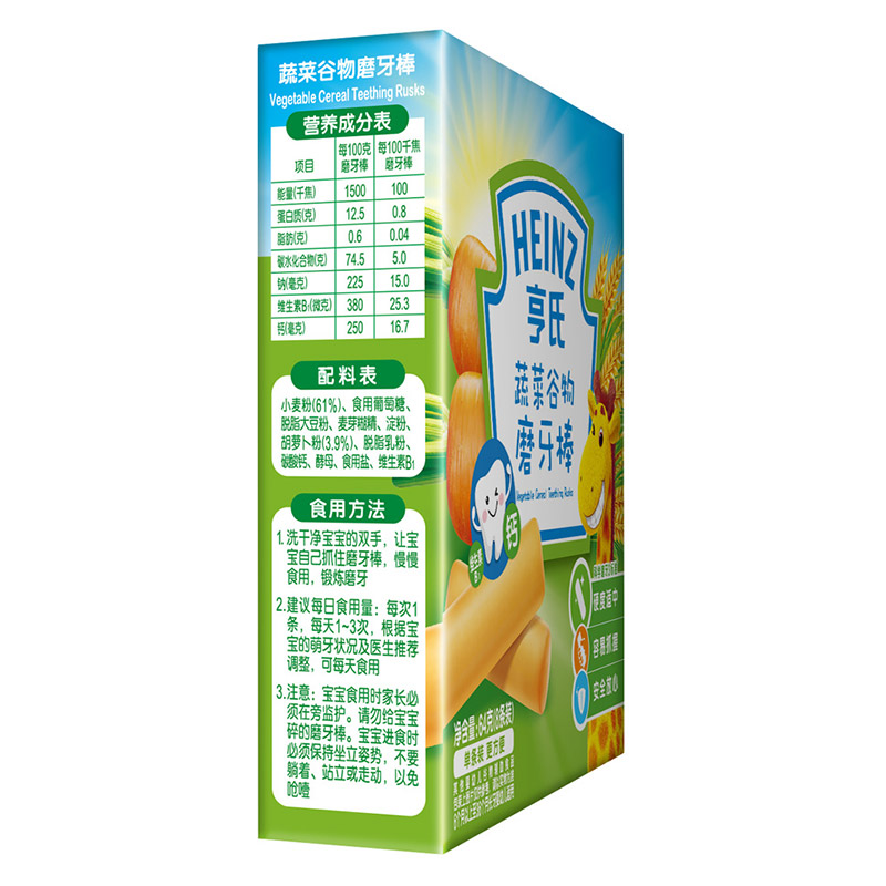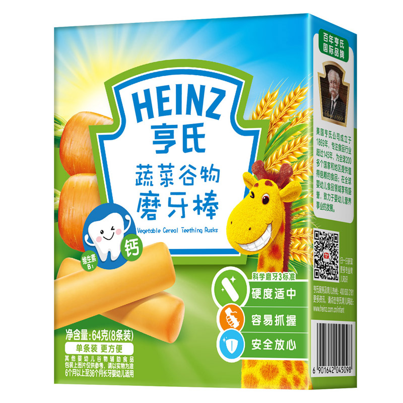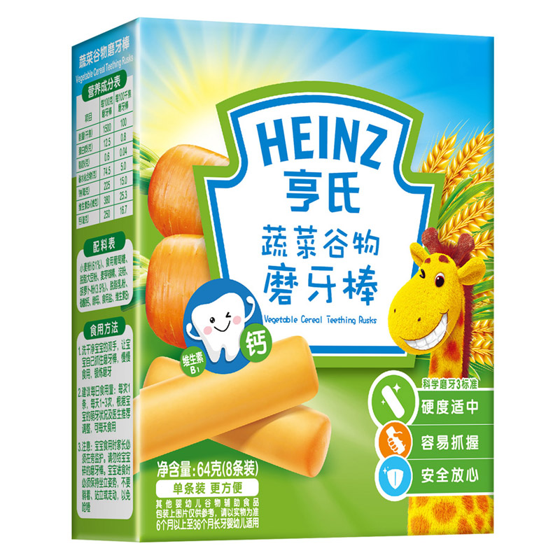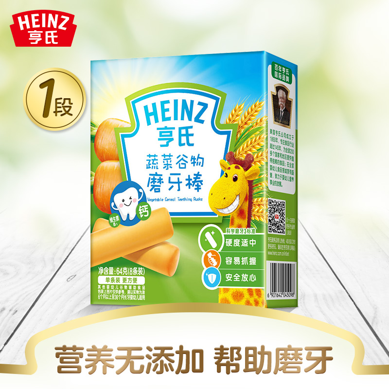 亨氏 (Heinz) 1段 嬰幼兒輔食 蔬菜 寶寶零食磨牙棒64g(輔食添加初期-36個月適用)