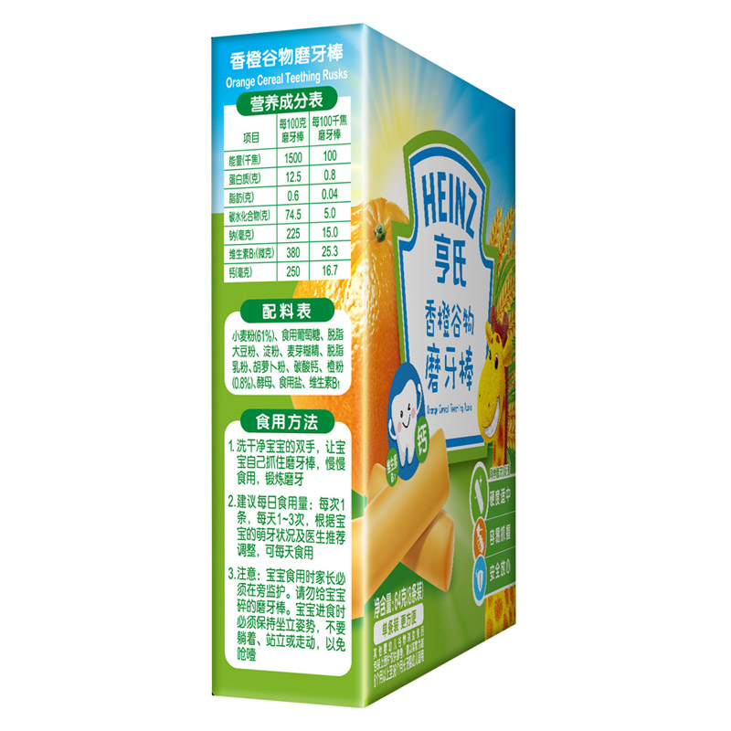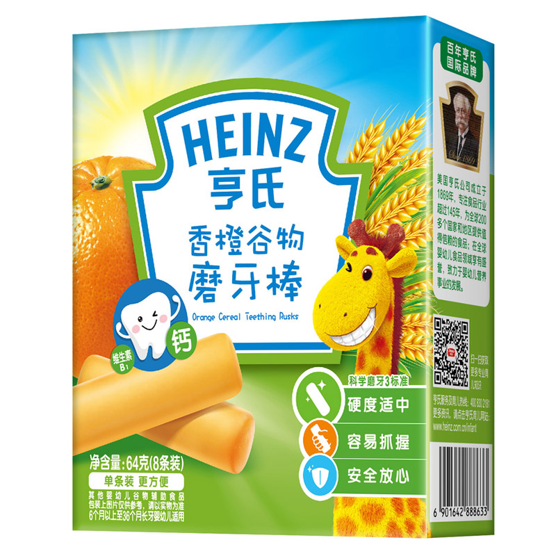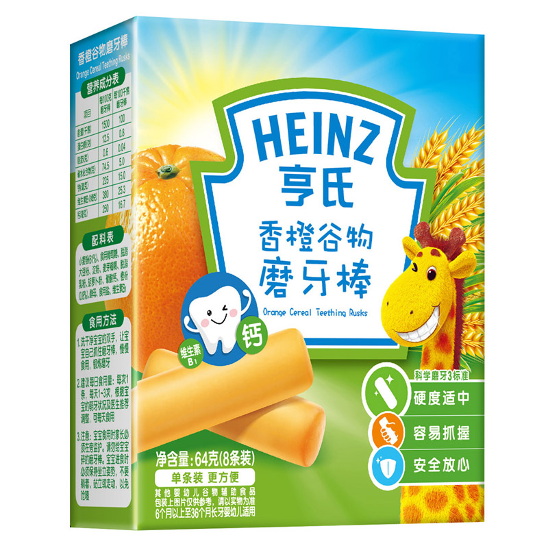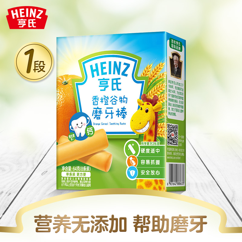 亨氏 (Heinz)1段 嬰幼兒輔食 香橙 寶寶零食磨牙棒64g(輔食添加初期-36個月適用)