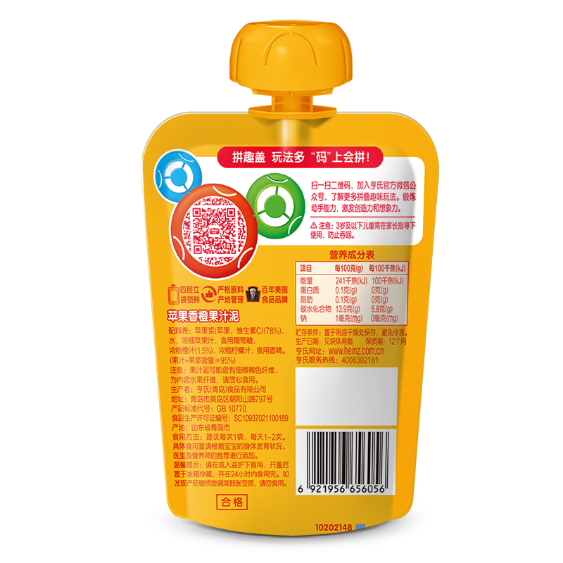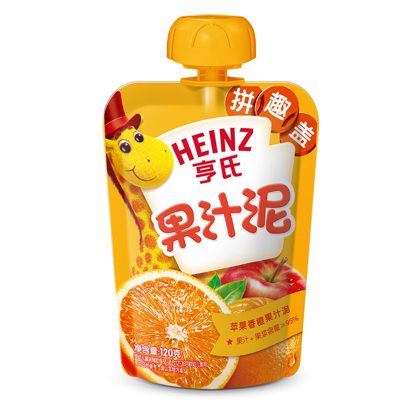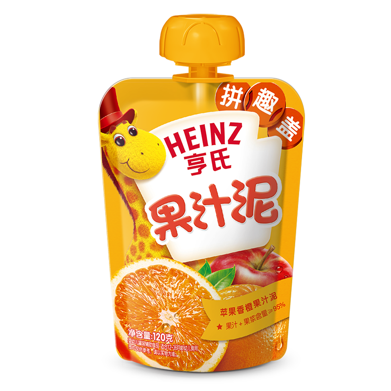 亨氏(Heinz)果汁泥 嬰兒水果泥寶寶輔食泥零食(1-3歲適用) 香橙蘋果120g