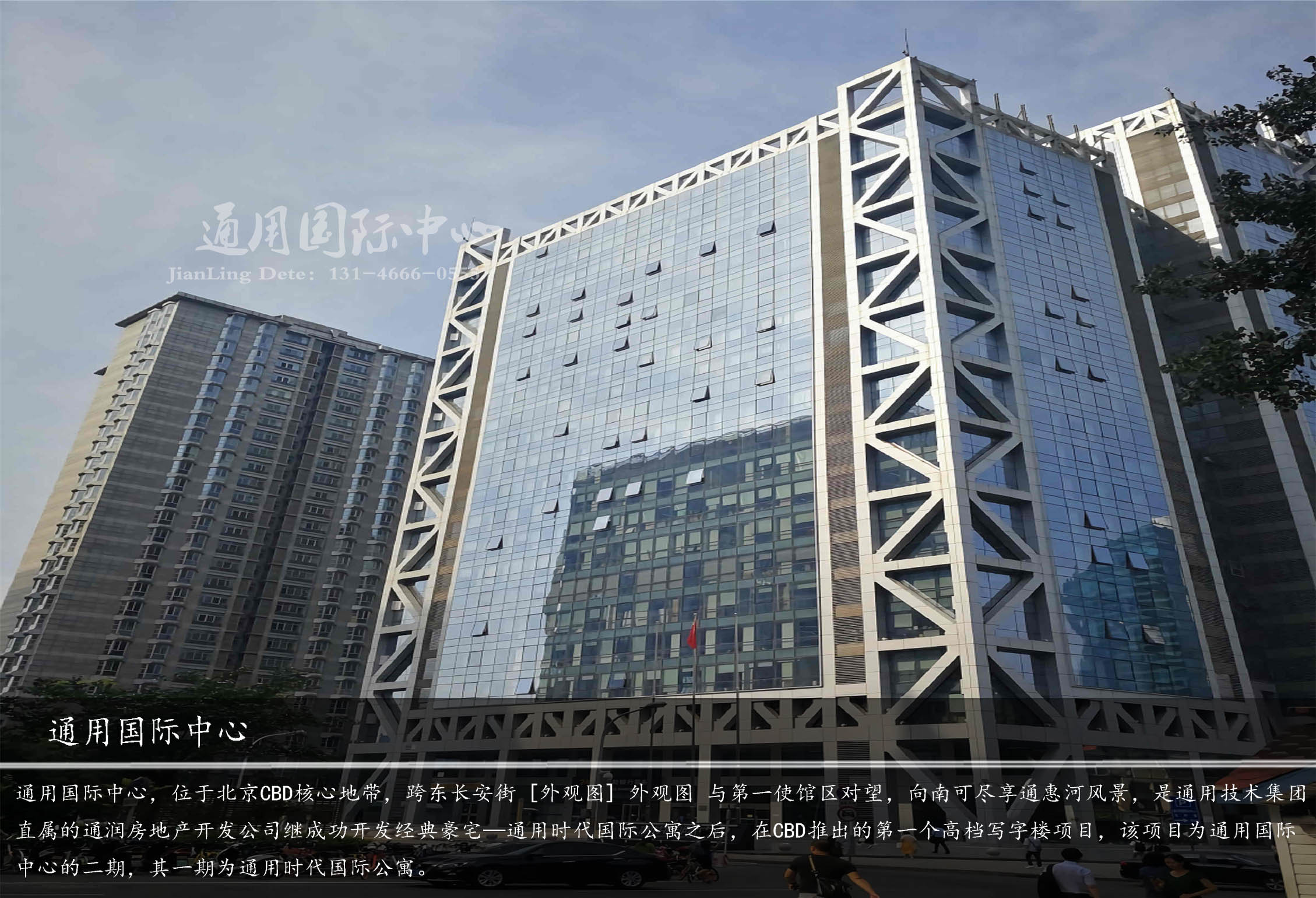 通用國際中心,位于建國門外大街永安東里甲3號(hào),北京CBD核心地帶,跨東長(zhǎng)安街與第一使館區(qū)對(duì)望,向南可盡享通惠河風(fēng)景,是通用技術(shù)集團(tuán)直屬的通潤(rùn)房地產(chǎn)開發(fā)公司繼成功開發(fā)經(jīng)典豪宅——通用時(shí)代國際公寓之后,在CBD推出的第一個(gè)高檔寫字樓項(xiàng)目,該項(xiàng)目為通用國際中心的二期,其一期為通用時(shí)代國際公寓。北京秉承打造百年建筑的企業(yè)理念,通用國際中心全面采用國際化標(biāo)準(zhǔn),使用國際上先進(jìn)的全鋼結(jié)構(gòu),是繼國貿(mào)、京廣中心之后,CBD第三座全鋼結(jié)構(gòu)國際寫字樓。