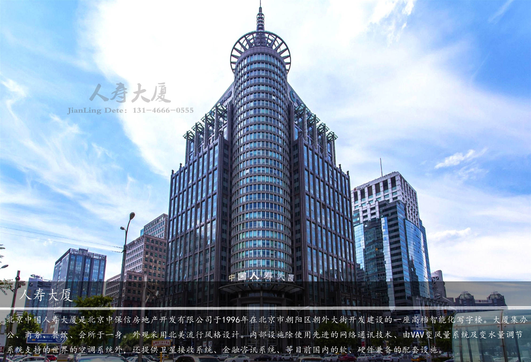 北京中國人壽大廈是北京中保信房地產(chǎn)開發(fā)有限公司于1996年在北京市朝陽區(qū)朝外大街開發(fā)建設(shè)的一座高檔智能化寫字樓。大廈集辦公、商務(wù)、餐飲、會所于一身。外觀采用北美流行風(fēng)格設(shè)計。內(nèi)部設(shè)施除使用先進的網(wǎng)絡(luò)通訊技術(shù)、由VAV變風(fēng)量系統(tǒng)及變水量調(diào)節(jié)系統(tǒng)支持的世界的空調(diào)系統(tǒng)外,還提供衛(wèi)星接收系統(tǒng)、金融咨訊系統(tǒng)、消防自動報警系統(tǒng)、樓宇自控系統(tǒng)、保安監(jiān)控系統(tǒng)、車庫管理系統(tǒng)等目前國內(nèi)的軟、硬件兼?zhèn)涞呐涮自O(shè)施。大廈從外觀、內(nèi)部設(shè)置、室內(nèi)精裝及功能設(shè)施等各方面都將成為北京21世紀新型智能化寫字樓的代表作。