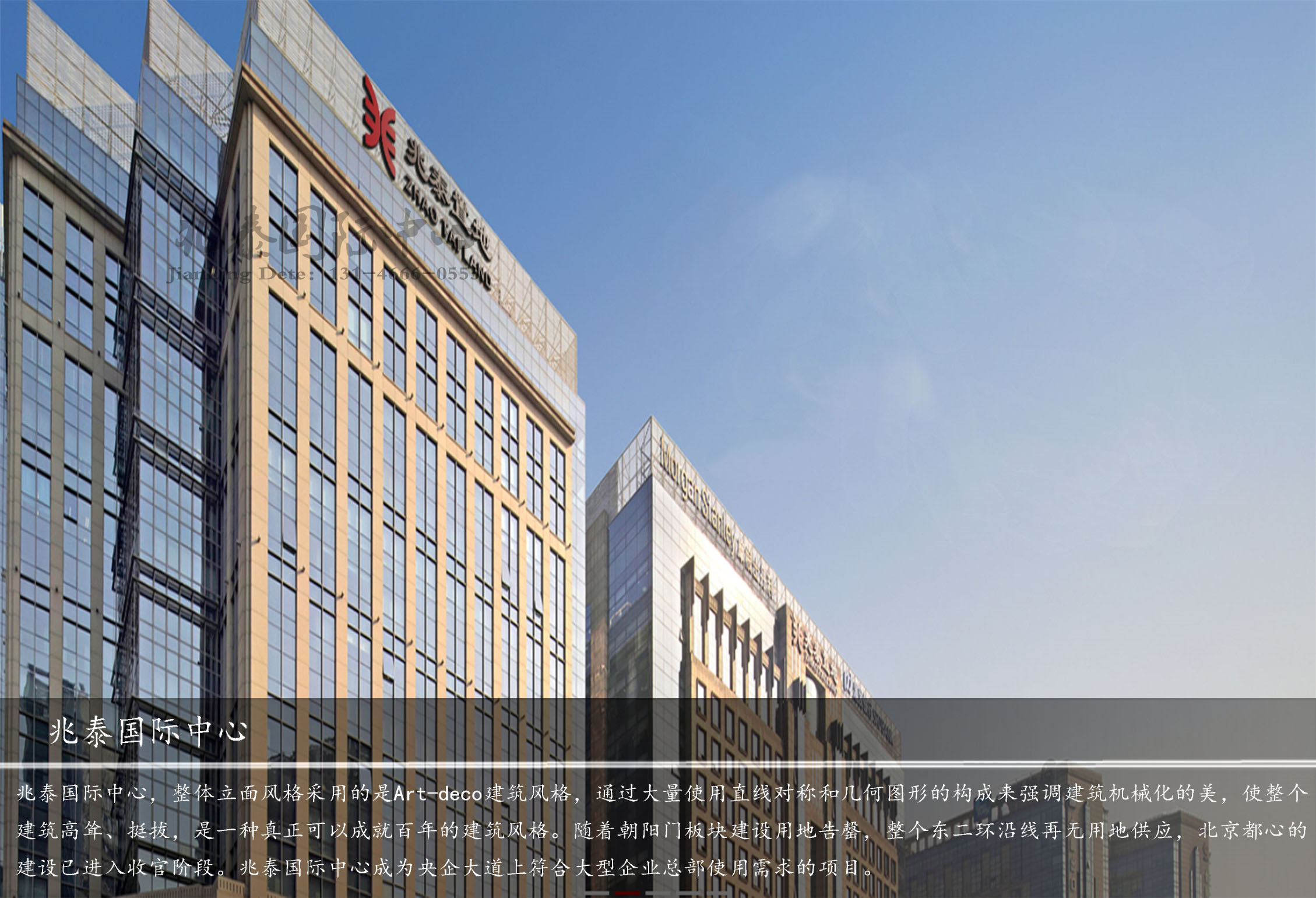 兆泰國際中心,整體立面風格采用的是Art-deco建筑風格,通過大量使用直線對稱和幾何圖形的構(gòu)成來強調(diào)建筑機械化的美,使整個建筑高聳、挺拔,是一種真正可以成就百年的建筑風格。隨著朝陽門板塊建設用地告罄,整個東二環(huán)沿線再無用地供應,北京都心的建設已進入收官階段。兆泰國際中心成為央企大道上符合大型企業(yè)總部使用需求的項目。