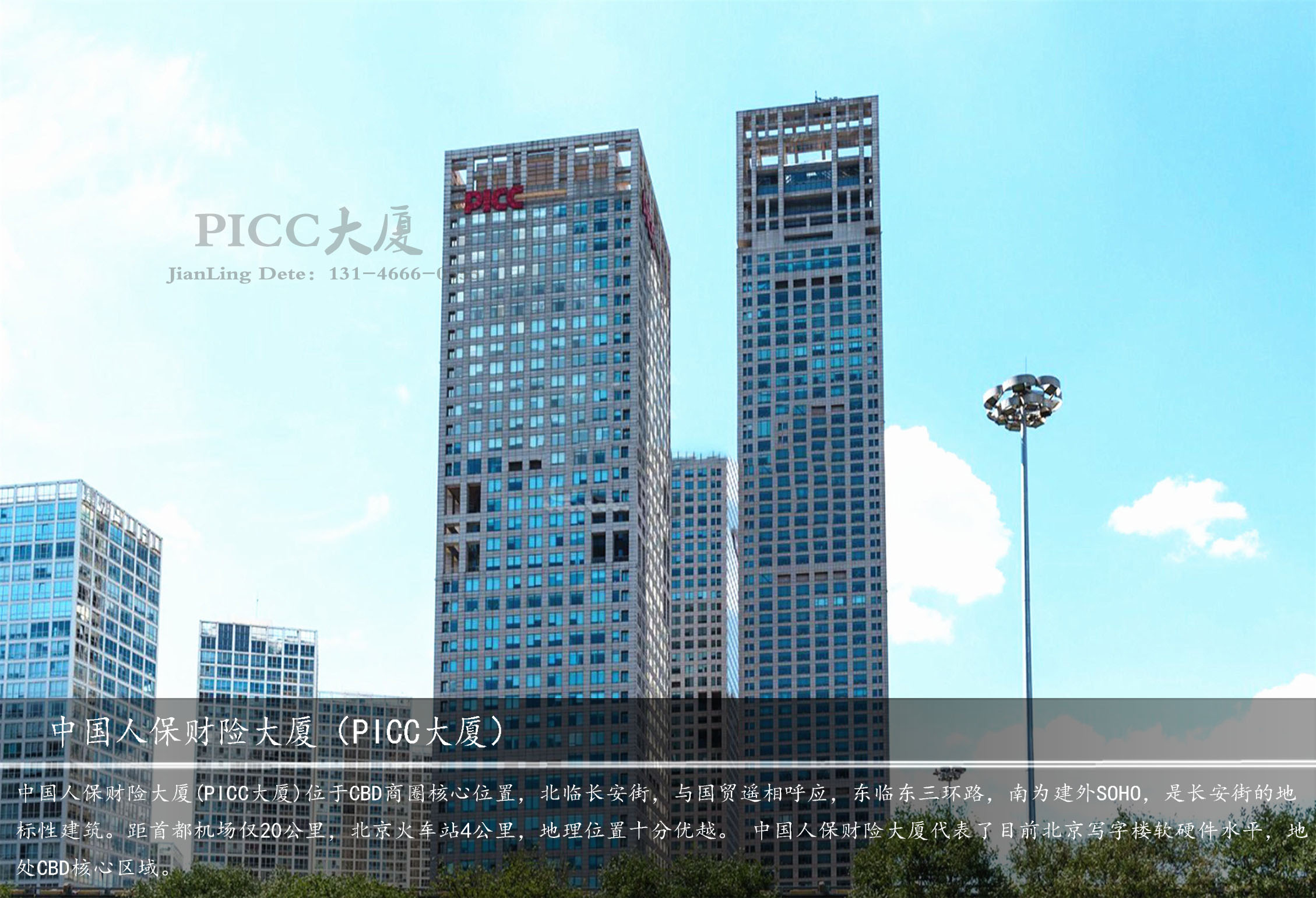 北京銀泰中心B座—中國人保財險大廈(PICC大廈)位于CBD商圈核心位置,北臨長安街,與國貿(mào)遙相呼應(yīng),東臨東三環(huán)路,南為建外SOHO,是長安街的地標(biāo)性建筑。距首都機場僅20公里,北京火車站4公里,地理位置十分優(yōu)越。 中國人保財險大廈代表了目前北京寫字樓軟硬件水平,地處CBD核心區(qū)域。連續(xù)多年與北京地鐵、奧運鳥巢、央視新址等,并列北京60項重大工程的經(jīng)典知名項目。 PICC大廈總建筑面積73975平方米,高186米、共44層,是繼國貿(mào)中心之后,長安街的地標(biāo)性建筑;視野開闊,極目遠眺,不僅可以俯瞰神州第一街,東三環(huán)及整個CBD核心區(qū)繁華景觀也盡收眼底,讓企業(yè)掌舵者做出遠矚的決策;