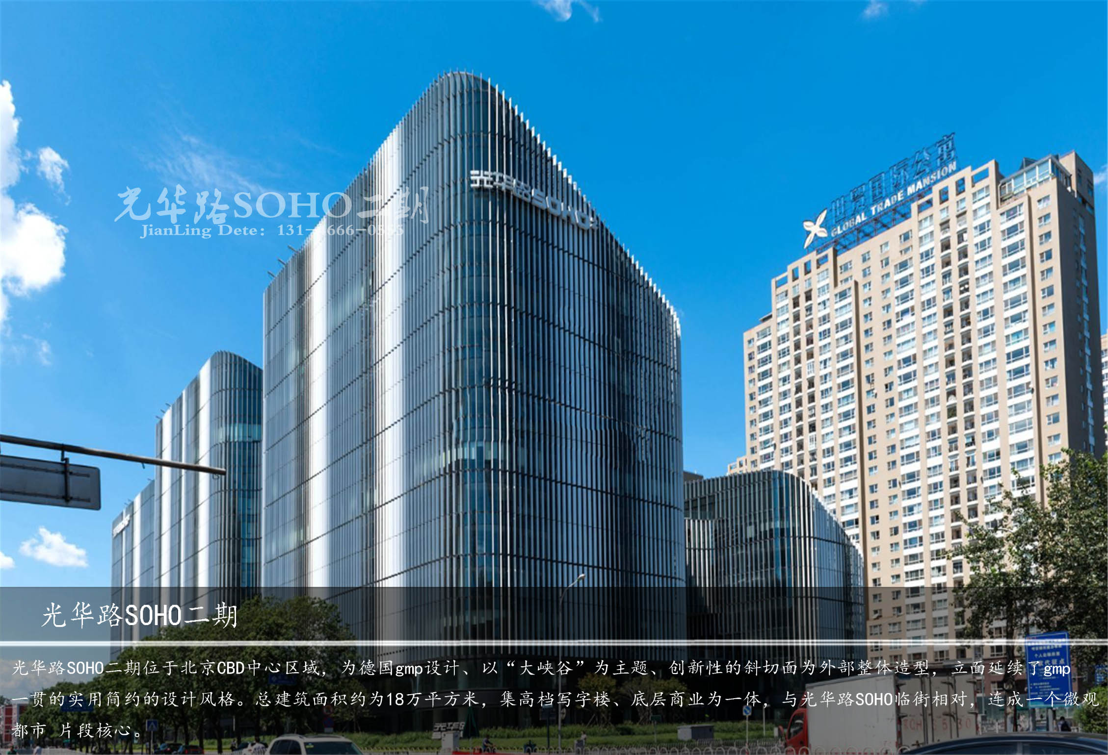 光華路SOHO二期位于北京CBD中心區(qū)域與光華路SOHO臨街相對(duì),連成一個(gè)微觀都市 片段核心,周邊圍繞僑福芳草地、世貿(mào)天街、財(cái)富中心、國(guó)貿(mào)3期、央視新址等豐富的商業(yè)形態(tài)與眾不同的都市人群匯聚于此,享受完整的日常辦公及休閑娛樂(lè)。