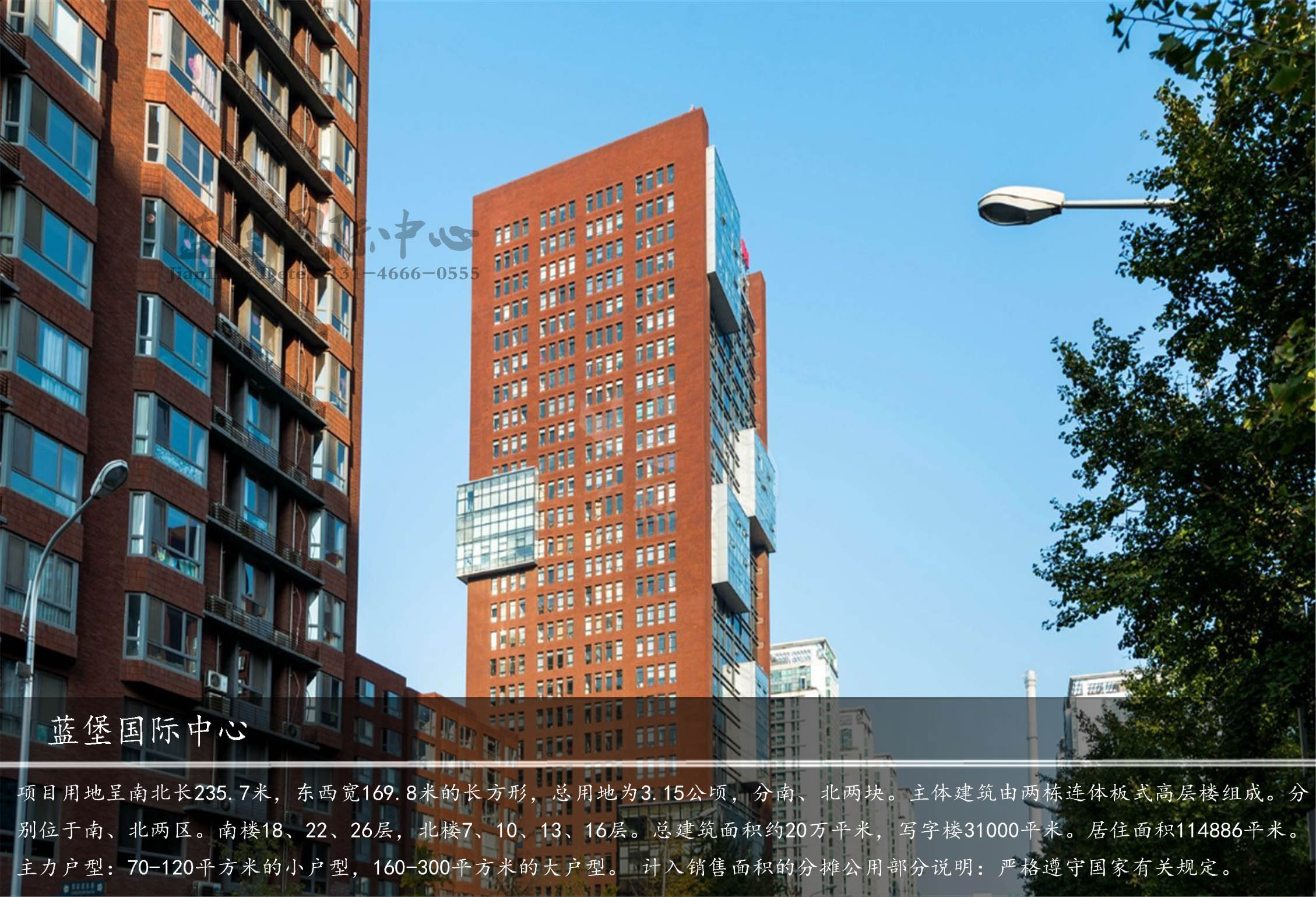 項(xiàng)目用地呈南北長(zhǎng)235.7米,東西寬169.8米的長(zhǎng)方形,總用地為3.15公頃,分南、北兩塊。主體建筑由兩棟連體板式高層樓組成。分別位于南、北兩區(qū)。南樓18、22、26層,北樓7、10、13、16層。總建筑面積約20萬(wàn)平米,寫字樓31000平米。居住面積114886平米,總居住戶數(shù)832戶。主力戶型:70-120平方米的小戶型,160-250平方米的大戶型。 計(jì)入銷售面積的分?jǐn)偣貌糠终f(shuō)明:嚴(yán)格遵守國(guó)家有關(guān)規(guī)定。
