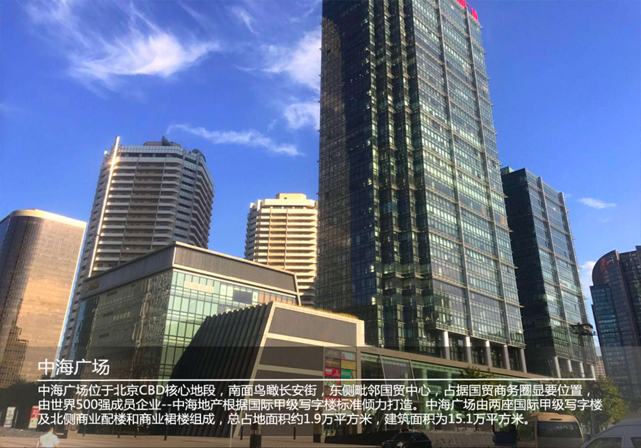 中海廣場(chǎng)位于北京CBD核心地段,南面鳥瞰長(zhǎng)安街,東側(cè)毗鄰國(guó)貿(mào)中心,占據(jù)國(guó)貿(mào)商務(wù)圈顯要位置,由世界500強(qiáng)成員企業(yè)中海地產(chǎn)根據(jù)國(guó)際甲級(jí)寫字樓標(biāo)準(zhǔn)傾力打造。中海廣場(chǎng)由兩座國(guó)際甲級(jí)寫字樓及北側(cè)商業(yè)配樓和商業(yè)裙樓組成,總占地面積約1.9萬(wàn)平方米,建筑面積為151,000平米。 交通情況十分發(fā)達(dá):城市主干線長(zhǎng)安街、東三環(huán),東西干道光華路通連四方; 地鐵1、10號(hào)線、數(shù)十條公交線路均匯聚于此;項(xiàng)目西側(cè)規(guī)劃中的CBD中軸路及北側(cè)、 南側(cè)、東側(cè)市政規(guī)劃路將使本項(xiàng)目交通更為便捷。