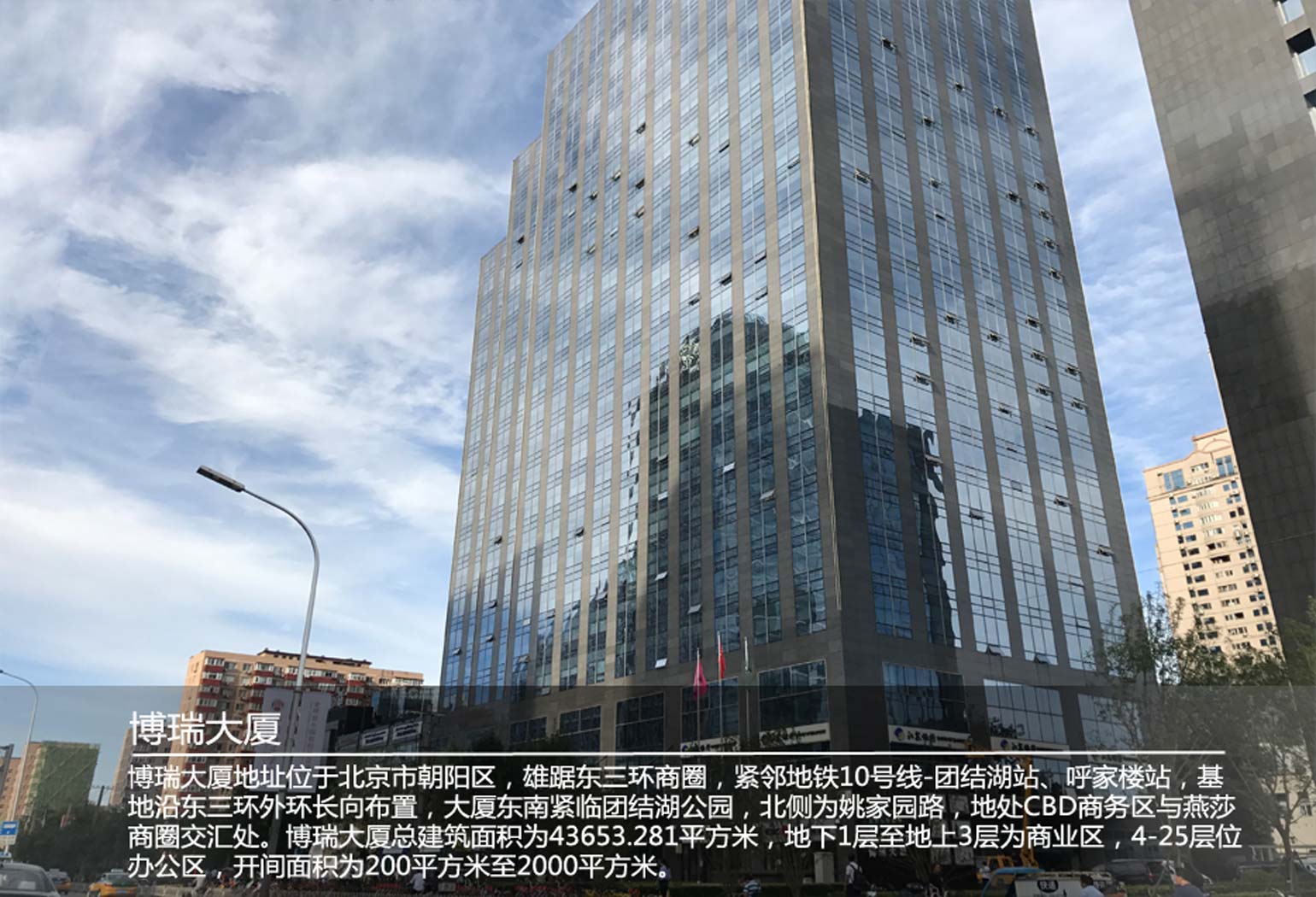 博瑞大廈地址位于北京市朝陽區(qū),雄踞東三環(huán)商圈,緊鄰地鐵10號線-團結湖站、呼家樓站,基地沿東三環(huán)外環(huán)長向布置,大廈東南緊臨團結湖公園,北側為姚家園路,地處CBD商務區(qū)與燕莎商圈交匯處。博瑞大廈總建筑面積為43653.281平方米,地下1層至地上3層為商業(yè)區(qū),4-25層位辦公區(qū),開間面積為200平方米至2000平方米。