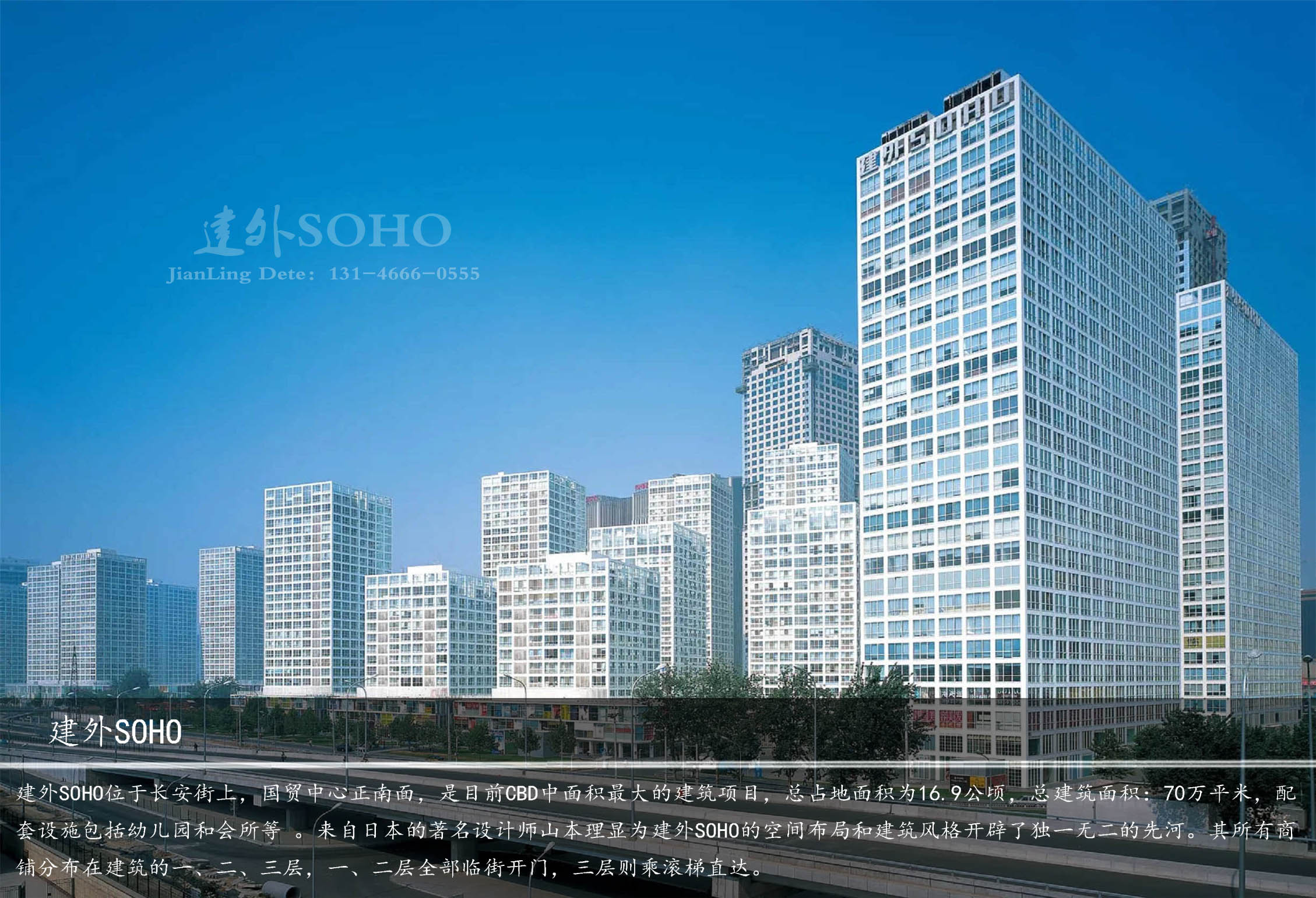 建外SOHO由北京著名房地產(chǎn)開發(fā)商SOHO中國開發(fā),山本理顯負責主要設計,另外邀請C+A小島和米,建外SOHO環(huán)境設計所擔任低層建筑的設計,是集設計建筑師們?yōu)橐惑w的建筑群。山本理顯表示,建外SOHO的靈感來自一個名叫休達的摩洛哥城市:"我的做法就是把建外SOHO做成開放的,把一條條街穿插到建筑中去,打破了北京胡同和四合院的封閉概念。" 截至2004年6月,建外SOHO共登記銷售額60.5億元,占CBD區(qū)域在售的10個項目總銷售額134億元的45%,2004年1-6月,納稅總數(shù)為166,482,133。"建外SOHO"寫字樓建筑物高100米,共31層,從開始到竣工只花了兩年的時間。它所帶來的不單是突破性的建筑概念,更提倡一種北京新生代的居住模式。